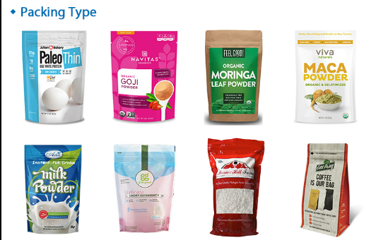 Ova gotova mašina za punjenje i zatvaranje vrećica koja se sastoji od 8 radnih stanica efikasnosti i stabilnosti, naglašava paket vrećice za držanje, vrećice sa patent zatvaračem, vrećice za izljev i raznih gotovih vrećica. Sarađivao sa pužni vijak i automatskih podiznih transportera, na koje se primenjuje prah materijal.