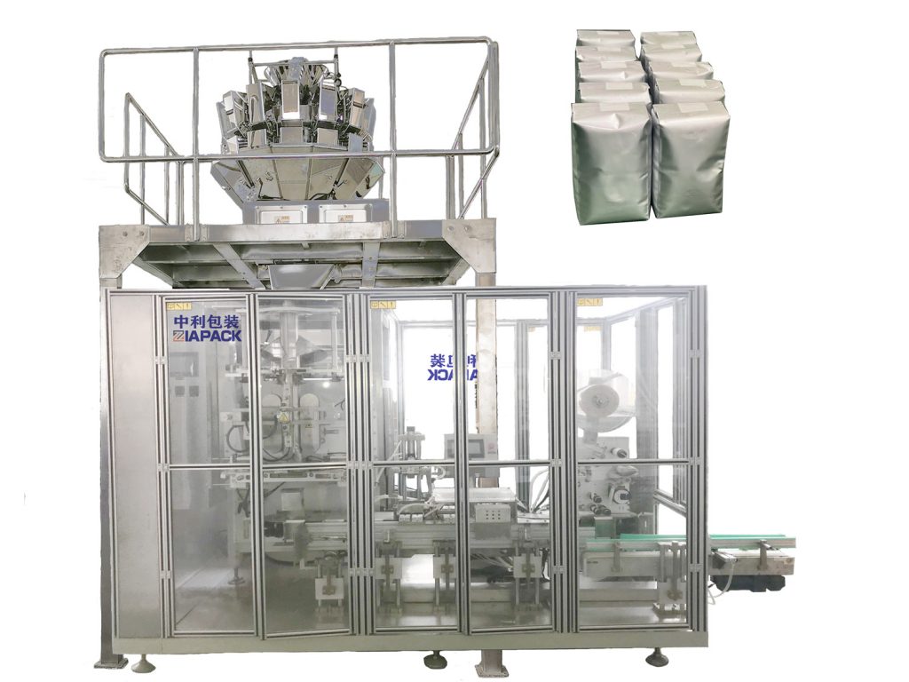 Cijela linija uključuje jedan set vffs vrećica za formiranje punjenja mašine za zaptivanje jednu set top naljepnicu vrećicu za pakovanje mašina, jedan set za provjeru težine i buffer transporter stroj i jedan set skupljajuća folija mašina za omatanje. i savijanje. Postoji dodatna opciona funkcija za usisavanje vrećice koja se može dodati na ovu mašinu.