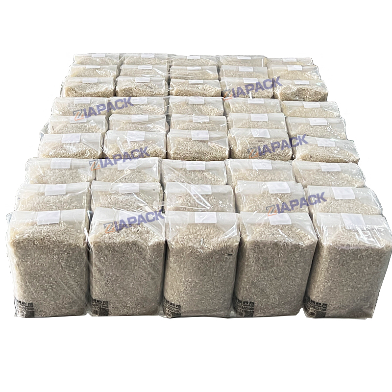 Ova linija se može koristiti i za pakovanje pšeničnog brašna , pakovanje pirinča i pasulja . Vrećica sa ravnim dnom i gornjim štapom . Lako za stajanje na policama .