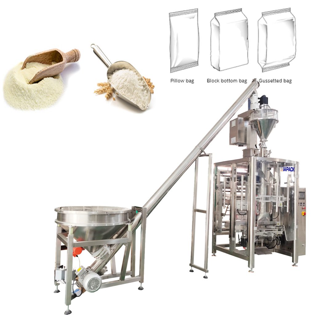 Ova jedinica stroja uključuje jedan set ZL1100 vertikalne vrećice za formiranje punjenja mašine za zatvaranje i jedan set ZL2000 stroj za mjerenje puževa. Cijela jedinica stroja može doći do automatske izrade vreća, vaganja proizvoda, zatvaranja punjenja proizvoda i kodiranja datuma. Široko se koristi za pakovanje pšeničnog brašna, kafe prah i mlijeko u prahu i drugi proizvodi u prahu.
