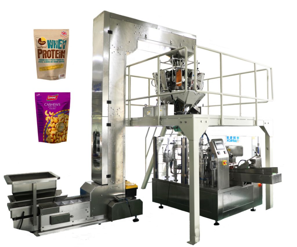 Mašina za pakovanje sa rotirajućom torbom sa različitim dozama (kao što su višenamenske vage, punjač puža, tečno punilo itd.) mogu biti pogodne za automatsko pakovanje za granulat, prah, tečnost, pastu itd.