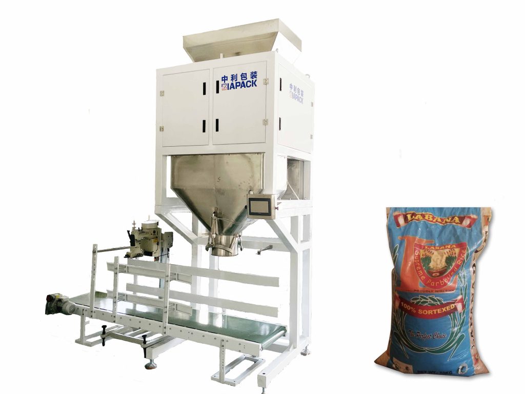 Ova jedinica mašine uključuje jednu mašinu za merenje vaganja sa duplim kantama za merenje 30-50 kg. Jedan set izlaznog transportera od 3 metra, jedan set mašine za zaptivanje PE vreća za grejanje i jednu mašinu za šivanje vreća od jute. Čitava mašina može automatski završiti vaganje proizvoda, punjenje proizvoda, automatsko šivanje vrećice i toplinsko zavarivanje. Potrebno je samo ručno ubacivanje vrećice.