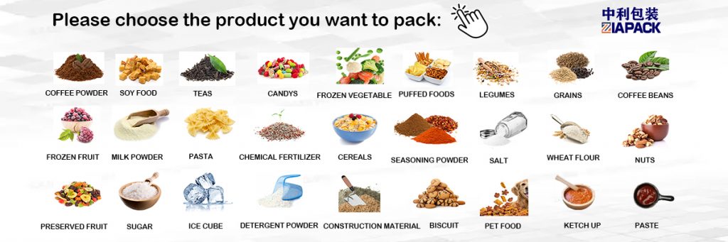 Pogodan je za granule, komad, pahuljice proizvode, kao što su grickalice, sir, tjestenine, bombone, hrana za kućne ljubimce, IQF smrznute namirnice ...