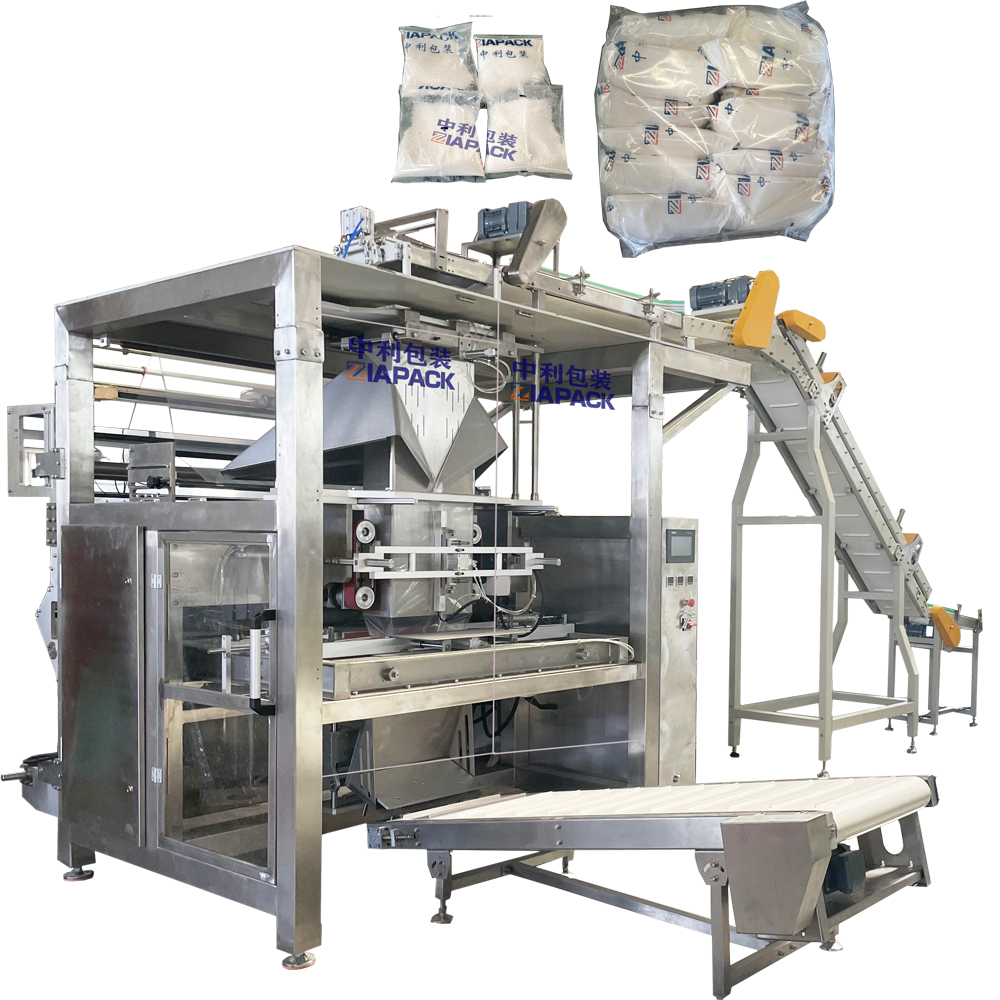 Ova mašina je pogodna za pakovanje male vrećice u veliku vreću. Mašina može automatski napraviti vreću i napuniti malu vreću, a zatim zatvoriti veliku vreću. Ova mašina uključujući jedinice mehanja: